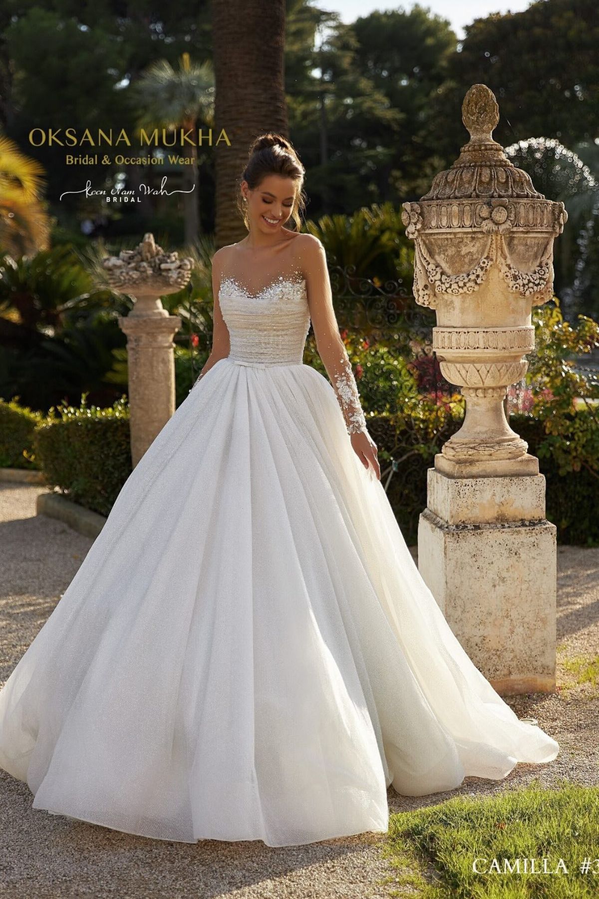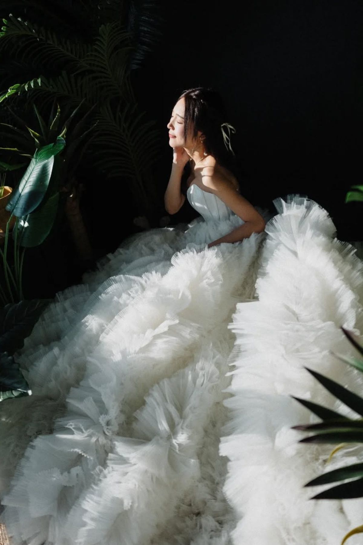 大裙襬加上長拖尾婚紗能突顯新娘子公主式的優雅氣質,亦十分適合酒店宴會廳/教堂這類空間較大、隆重感較強的場地穿着,試想像當你一步步從宴會廳或教堂門前慢慢移進賓客的視線,必定氣派十足,惹來全場的讚賞和艷羡的目光!