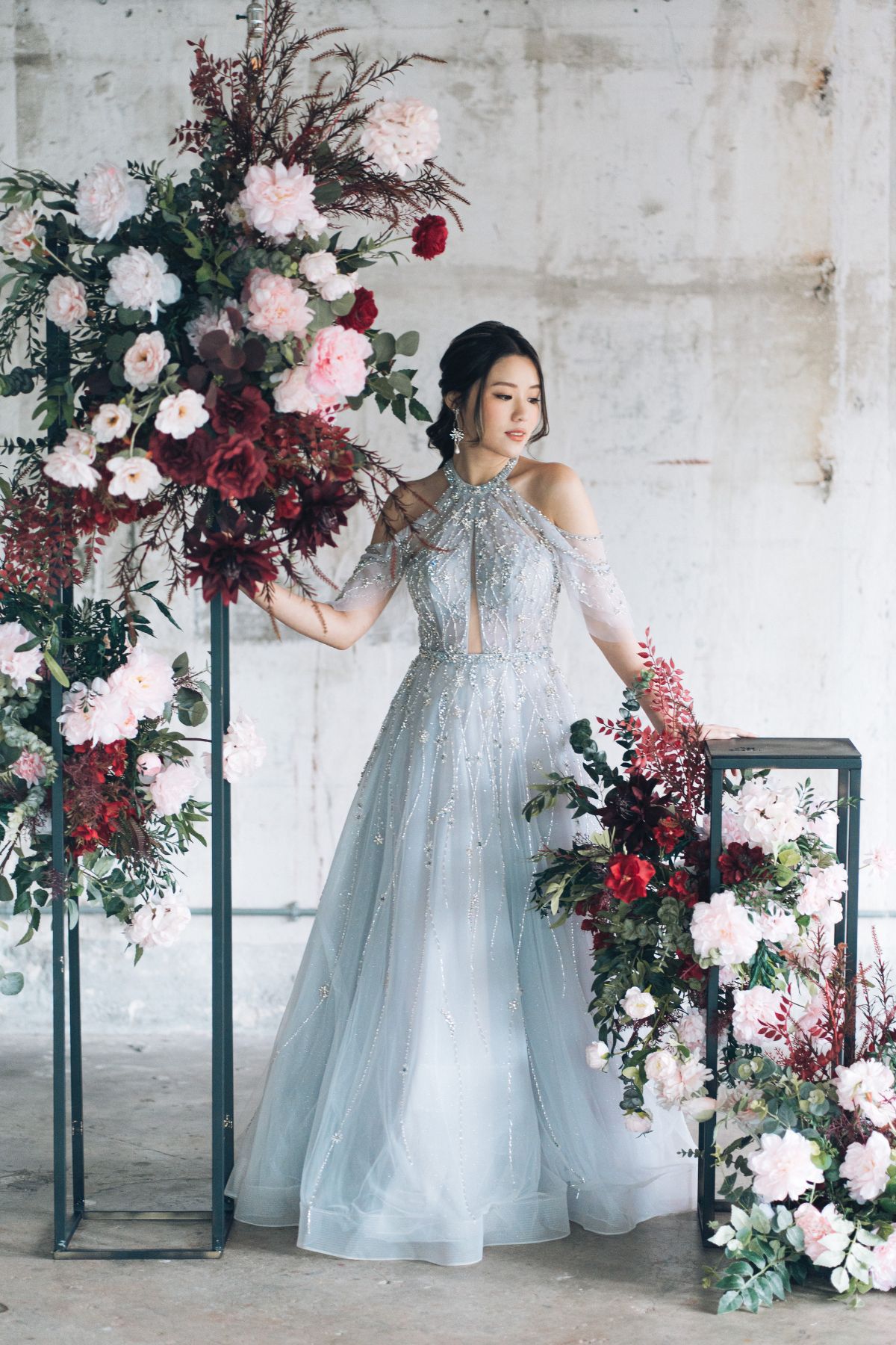 面料方面採用了更輕身的布料,剪裁上突顯身形曲線美,加上閃片元素,令新娘恍似置身於聚光燈下,感覺更華麗璀璨。