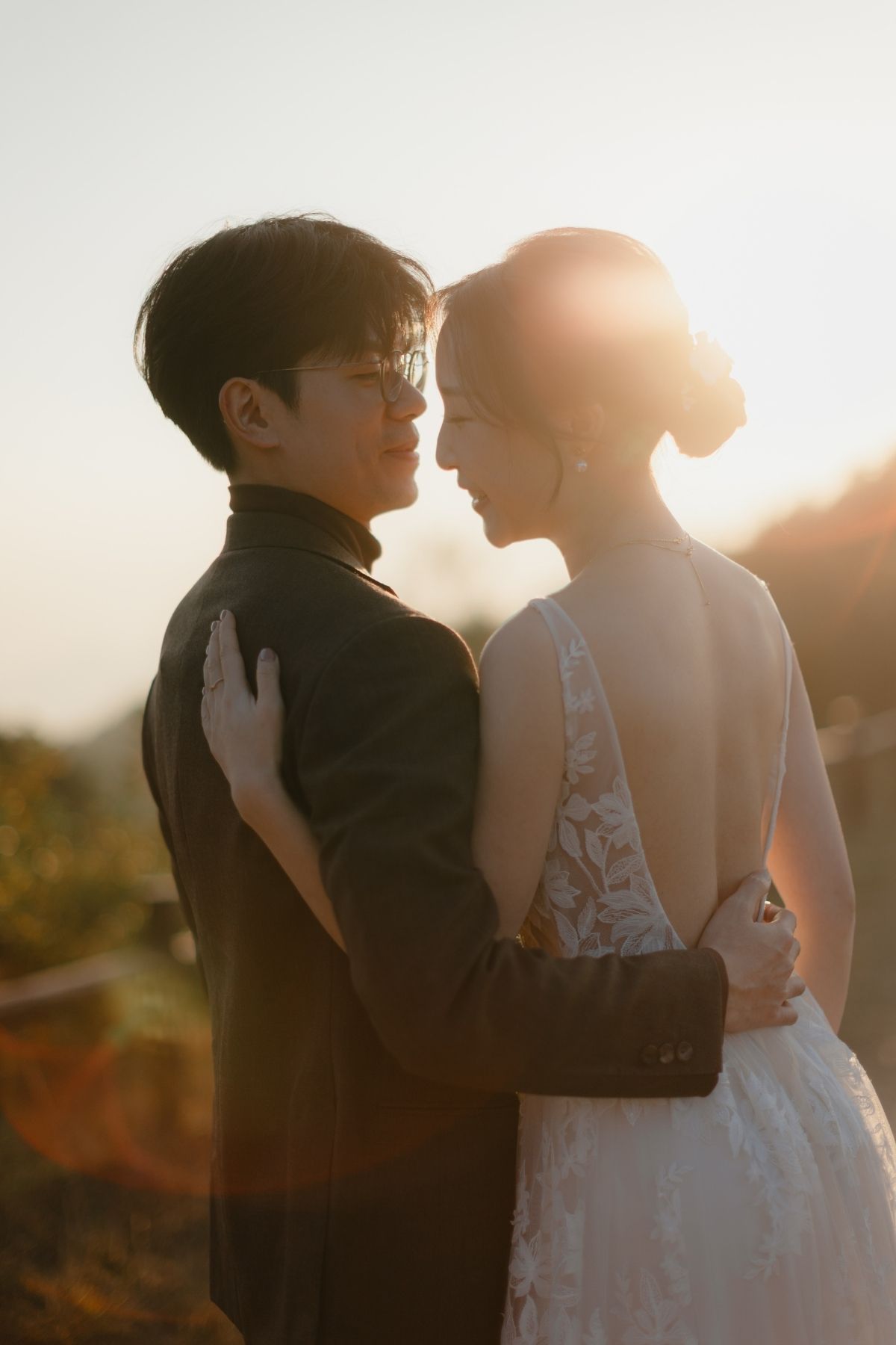 不論是 Big Day 的緊張與期待,還是 Prewedding 的輕鬆與探索,Elly 都會鼓勵客人放下尷尬的情緒、敞開心扉,盡情感受屬於自己的每一個瞬間。她認為,拍攝不是一項需要完成的任務,而是一場值得享受的體驗 —— 在婚紗拍攝過程中,Elly樂於與新人們一同探索未知的角落,宛如與朋友輕快漫遊,既給予專業的指引,也保留足夠的發揮空間,讓自然隨性的互動在鏡頭下自然綻放。