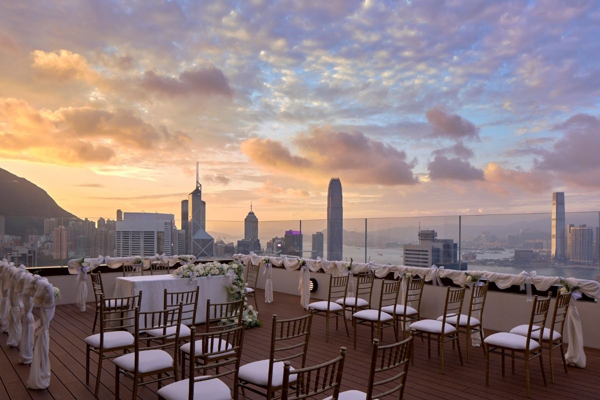 位於酒店頂層 58 樓的峯景匯 58以絕無僅有的景觀優勢締造難忘的婚禮。這裏擁有 180 度無阻擋的視野,維港的醉人景致與翠綠山景盡收眼底,不論是戶外證婚還是婚禮午宴,都能擁有天時地利的浪漫背景。場地最多可容納 140 位賓客,能凸顯婚禮的精緻與私密。室內設計採用典雅低調的英倫風格,線條簡潔優雅,與窗外的壯麗景觀形成巧妙平衡,既不喧賓奪主,又能增添高級感。