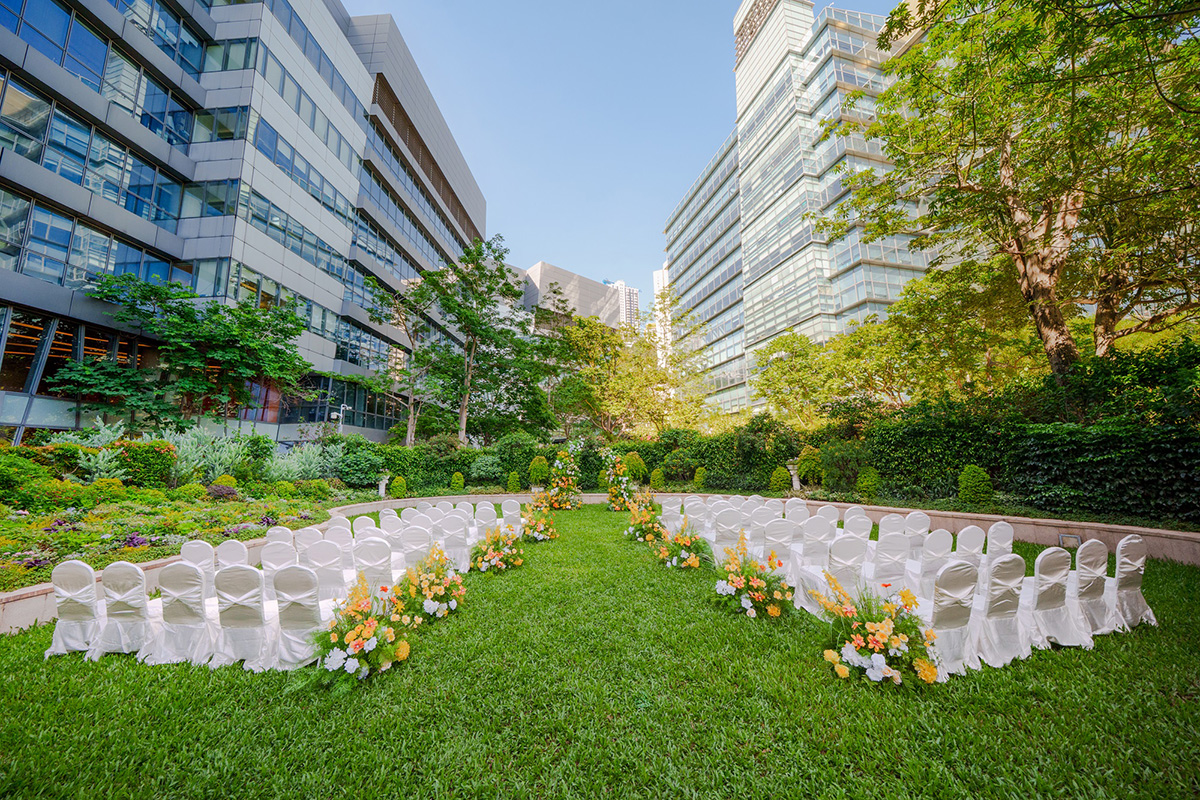 除了上述婚宴場地外,酒店亦設有環抱園林美景的平台花園。園內設有巨型高科技電視屏幕,為婚禮增添現代感與互動體驗。平台花園空間開闊,可容納多達1,000名賓客,讓賓客於自然與科技交織的氛圍中,盡享難忘時刻。