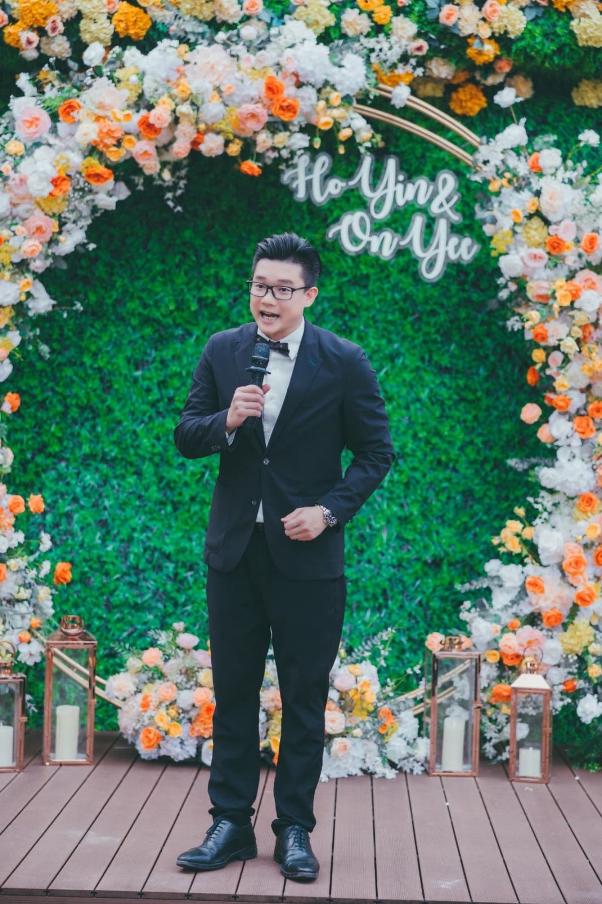 在婚禮籌備階段,MC Lu會與新人深入交談,傾聽他們的愛情故事、婚禮設想,甚至是一些細微的偏好與顧慮——是喜歡活潑熱鬧的環節,或是低調溫馨的氛圍;是希望突出某個特殊的愛情紀念,還是有需要照顧的親朋需求。他會把這些珍貴的資訊一一記錄,並融入到流程設計與主持細節中,用細心與耐心,讓新人無需顧慮雜事,只需全身心享受屬於自己的幸福時光。