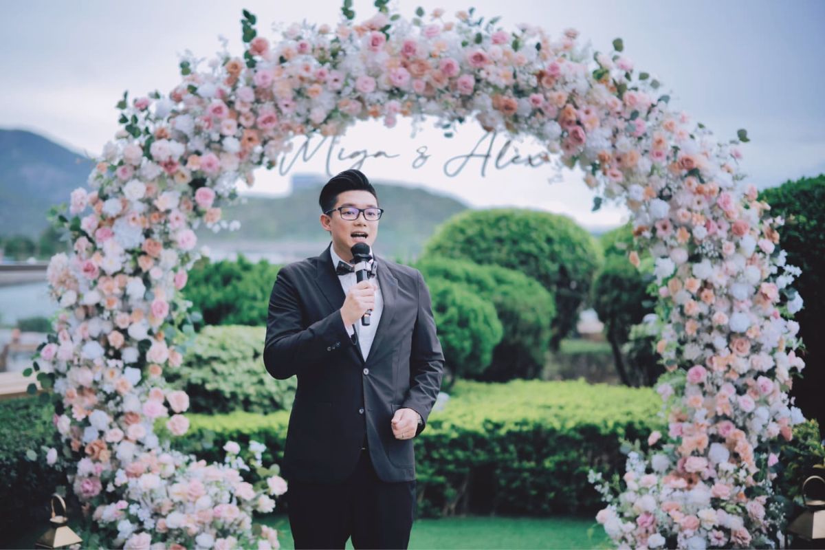 在婚禮籌備階段,MC Lu會與新人深入交談,傾聽他們的愛情故事、婚禮設想,甚至是一些細微的偏好與顧慮——是喜歡活潑熱鬧的環節,或是低調溫馨的氛圍;是希望突出某個特殊的愛情紀念,還是有需要照顧的親朋需求。他會把這些珍貴的資訊一一記錄,並融入到流程設計與主持細節中,用細心與耐心,讓新人無需顧慮雜事,只需全身心享受屬於自己的幸福時光。