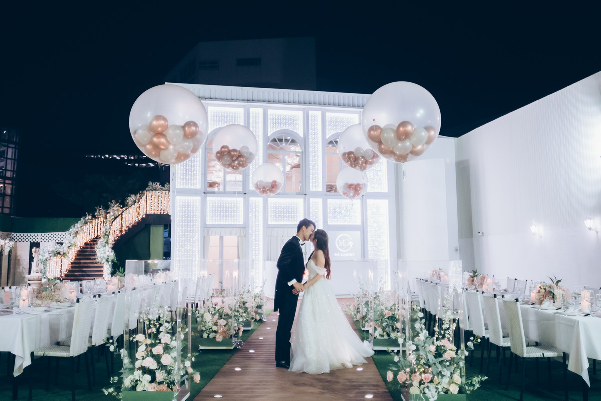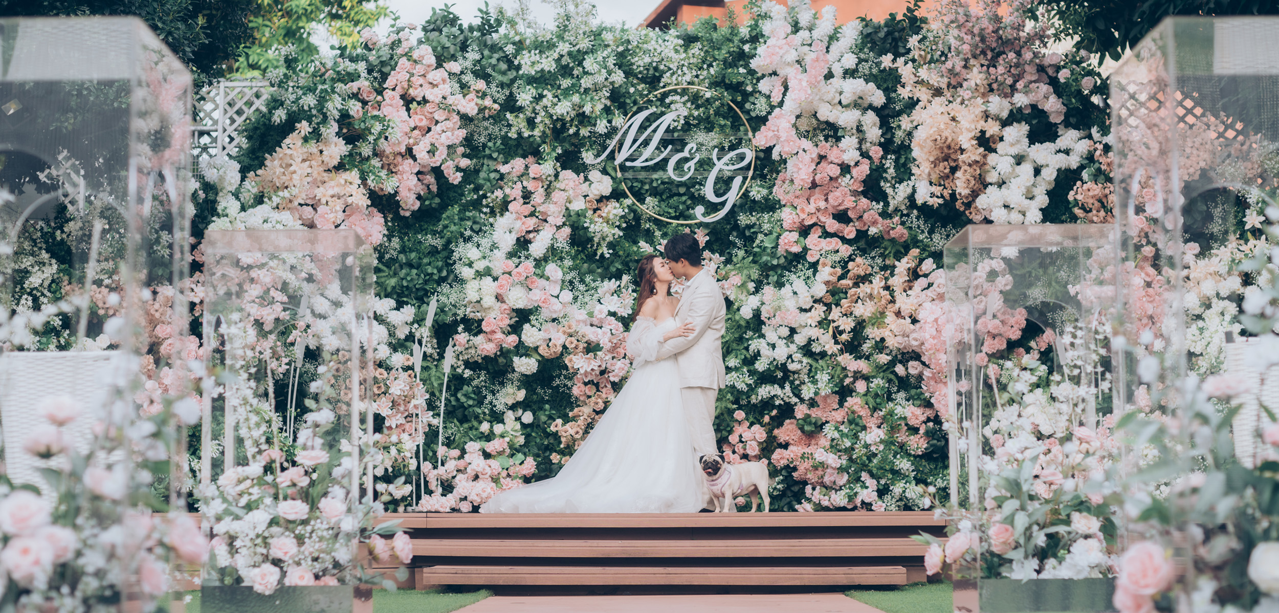 身處於繁囂城市中的森林花海仙境My Garden,設有立體花牆佈置、旋轉樓梯和獨立別墅式水晶屋等童話般的打卡場景,進場大道兩旁更破格以晶瑩剔透的花柱設計,為婚禮增添夢幻感。草地花園更是香港少數夢幻般的「Pet Friendly寵物友善場地」,讓毛孩當花童參與您的婚禮。