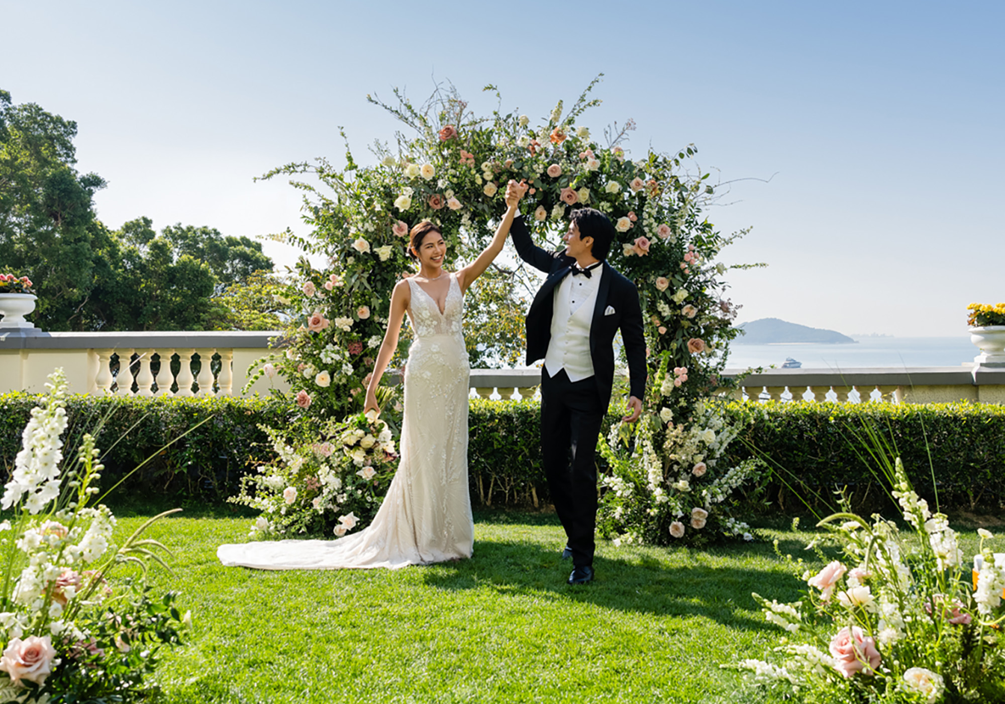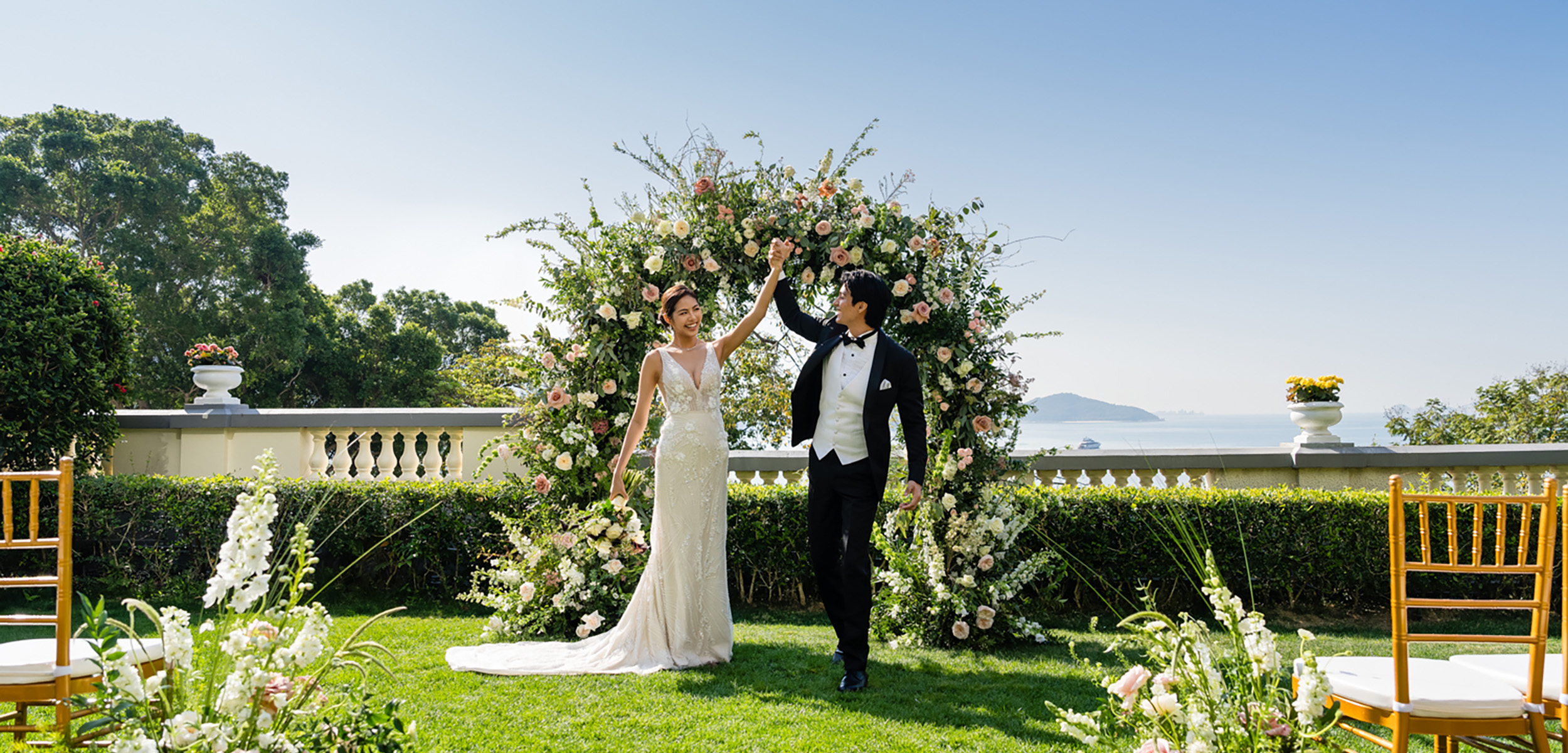 ・ 於綠茵草坪及影灣禮賓台舉行的現場證婚儀式,由Orpheus Music Consultants Co主理現場音樂表演