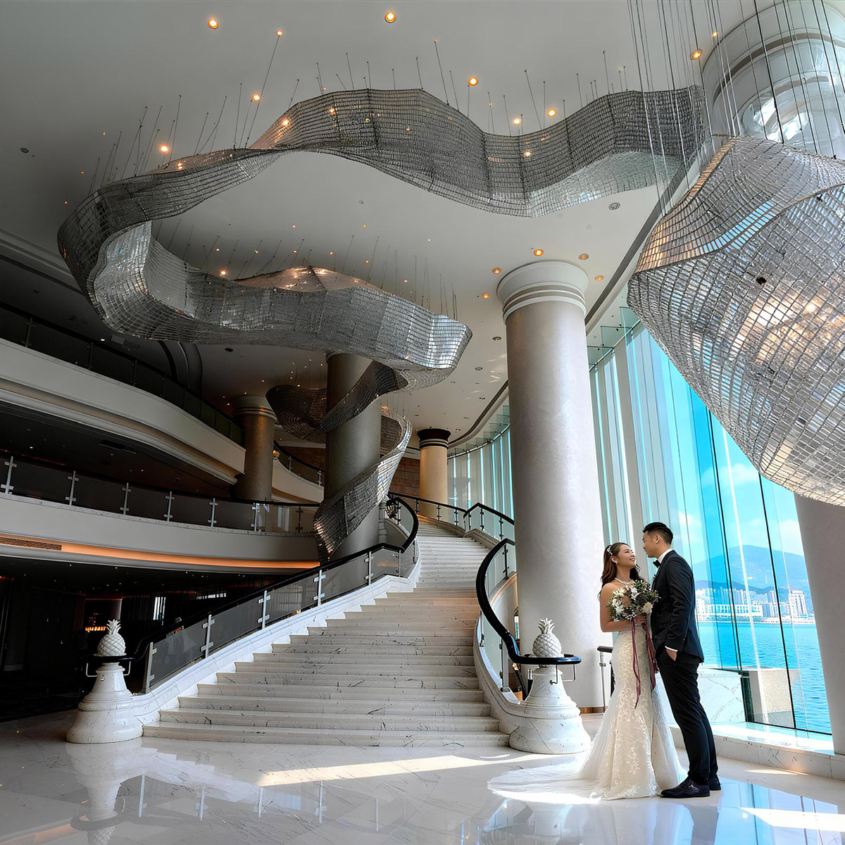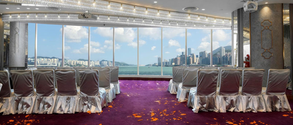 在黃埔海濱旁,「海雲天」為您打造一生難忘的婚禮盛宴。210度無敵維港景觀,讓您的誓言在晨曦金光與璀璨夜色中交相輝映,每一刻都成為永恆回憶。步入香港罕見的臨海雲石長梯,在大型落地玻璃映襯下,您將以最華麗姿態迎向賓客掌聲。簡約時尚的空間設計,搭配璀璨水晶吊燈,完美襯托精緻粵菜與當季茗茶,讓味蕾與視覺同步昇華。2026年中式午宴套餐每席HK$8,388起,中式晚宴套餐每席HK$11,988起。