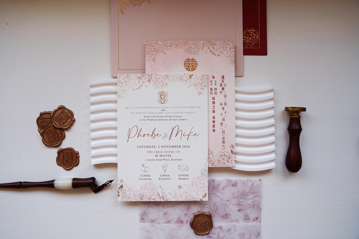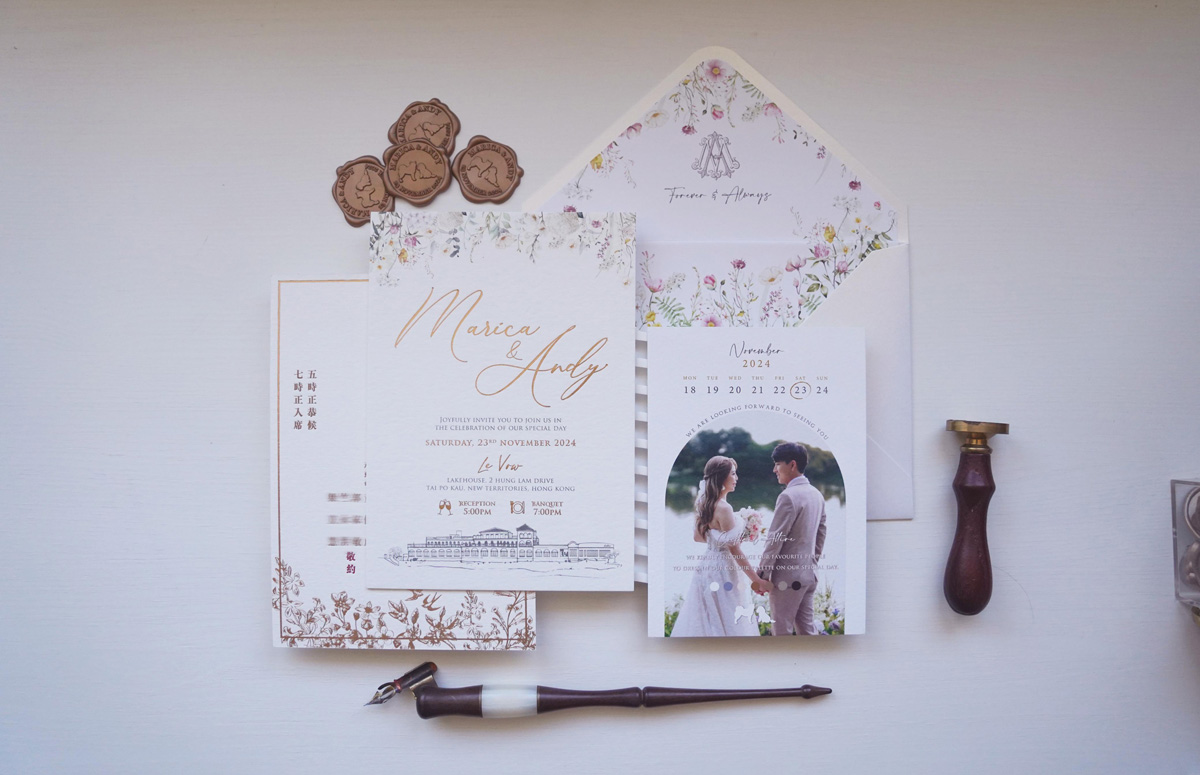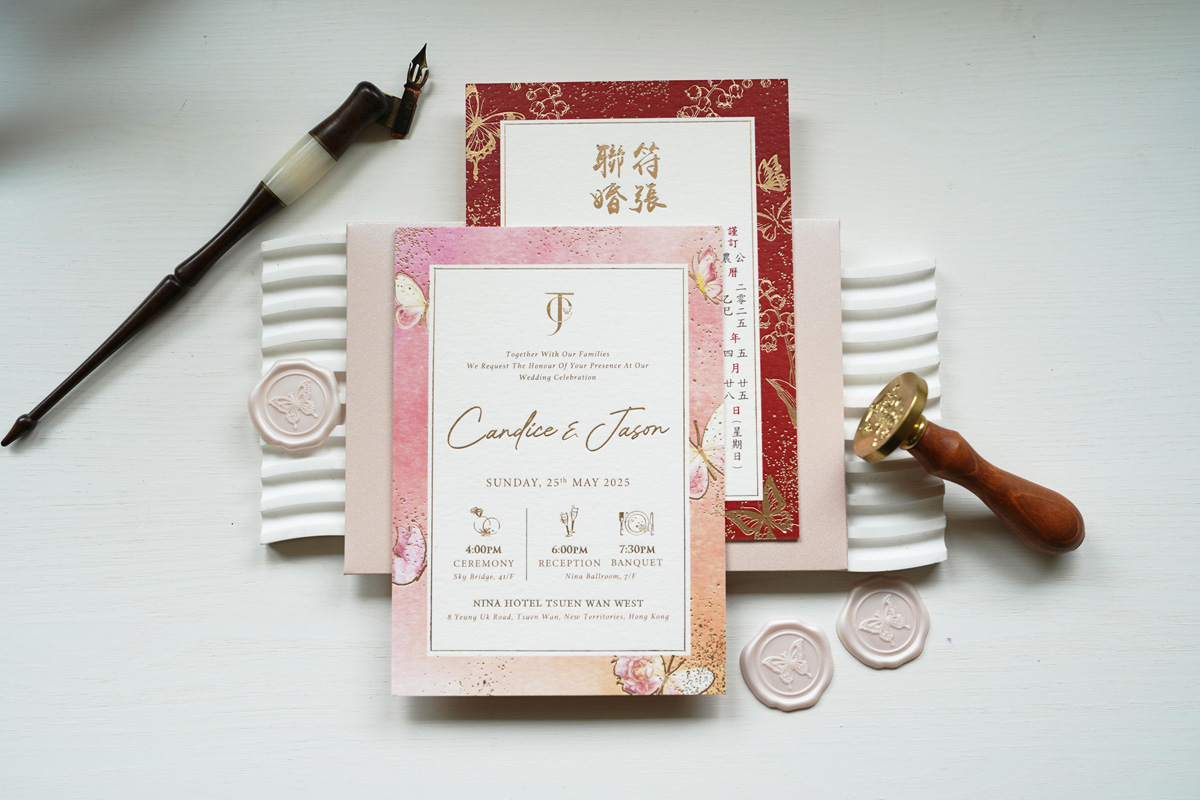 Romance Wedding 公司成立於2011年,一直專注於用心服務。囍帖不僅僅是一張紙;它為婚禮定下基調,展現了新人希望所愛的人能夠參與這一特殊時刻的期望,並表達了對每位來賓的感激之情。我們希望能為每位客人創造愉快的回憶。